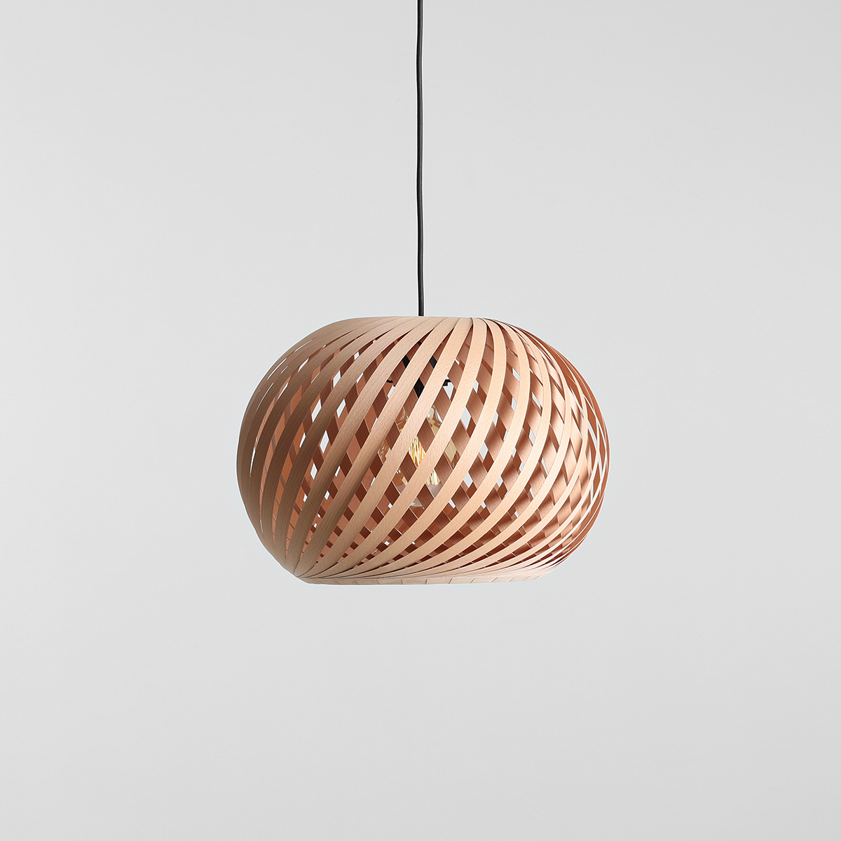 The largest lamp from the Nature Sun collection with a beech lampshade XL (70cm) and glass shade.