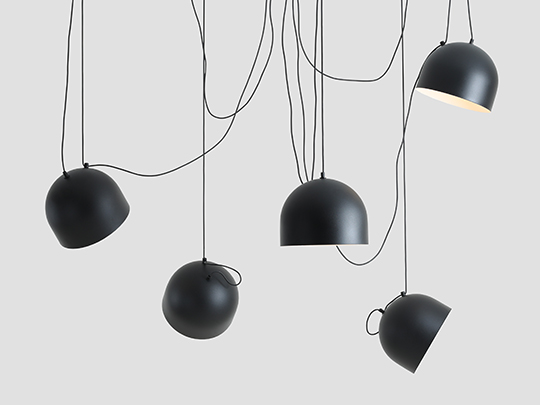 Triple pendant lamp in a pleasant shade of grey. Design by Sedno Studio.