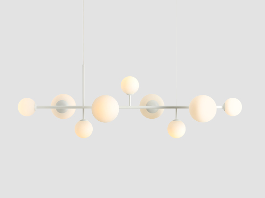Triple pendant lamp in a soft, creamy shade. Designed by Sedno Studio.