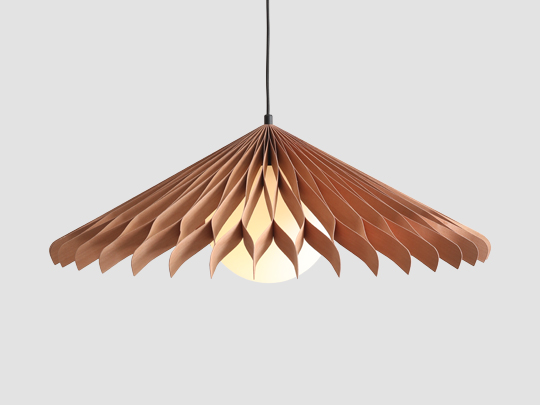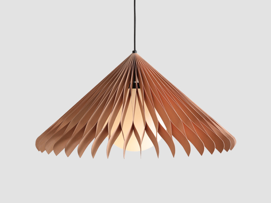 A pendant lamp with two shades in a warm, pleasant brown tone. Designed by Sedno Studio.