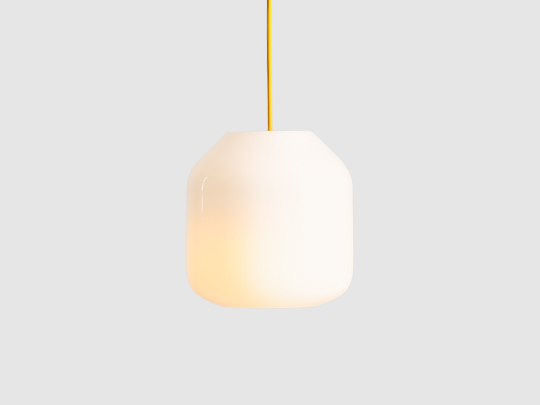 A small pendant lamp with a yellow cable.