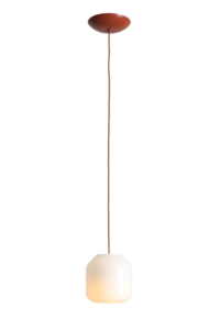 Flask Terra S by Mikołaj Nicer is a compact pendant that combines soft minimalism with earthy warmth. Its opal glass shade diffuses the light into a gentle, atmospheric glow, bringing calm and balance to contemporary interiors. The brick-toned cable and matching ceiling cup introduce a rich, grounded accent that subtly contrasts with the purity of the glass. With adjustable suspension, the S version is perfect above a bedside table, kitchen counter or arranged in a cluster for a more expressive look. Its smaller scale makes it an ideal choice for intimate spaces and focused lighting moments.