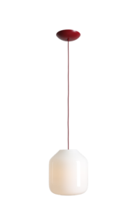 Flask Cherry L by Mikołaj Nicer is a bold yet refined pendant that pairs sculptural clarity with a rich colour accent. The opal glass shade releases a smooth, diffused glow that warms gently when illuminated, setting a relaxed and atmospheric tone. The cherry cable and coordinating ceiling cup add a distinctive decorative detail, enhancing the lamp’s personality while preserving its minimalist elegance. With its generous scale, the L version makes an ideal centrepiece above a dining table or a striking focal point in a living room. Adjustable suspension ensures the height can be tailored effortlessly to suit the space.