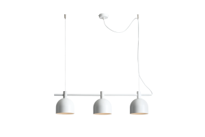 Beryl 3 White is a pendant lamp with adjustable suspension height and three metal shades attached to an 83cm wide bar. The cable leading from the bar allows it to be fixed to the ceiling in the place of your choice. This trendy lamp in a modern style will beautifully illuminate a table or a tabletop.