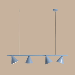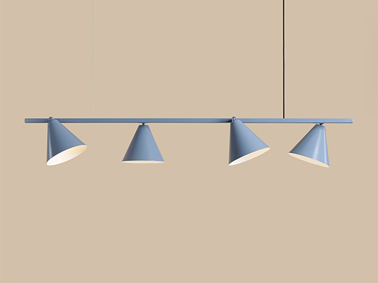 A single, modern Form Dusty Blue pendant lamp with a cone-shaped shade in a toned-down, blue colour. Living rooms, dining rooms, kitchen islands or public areas seem to be good places to use this lamp. It is also ideal as an accent for spaces decorated in a nautical style.