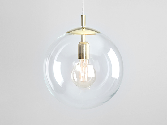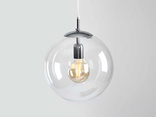 Simple in form, this pendant lamp in a chrome finish with a 30cm diameter transparent shade.