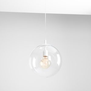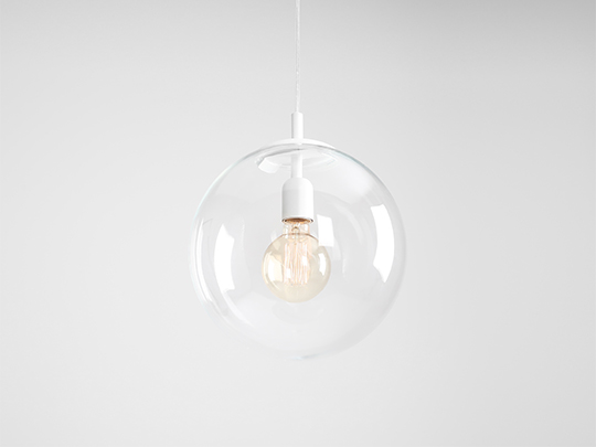 A simple in form pendant lamp with a transparent shade of 30cm in diameter, powder-coated in white matt.