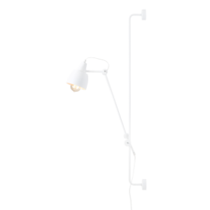 Industrialny kinkiet Dron White wykonany z metalu, rewelacyjnie harmonizuje zarówno z minimalistycznymi, jak i industrialnymi, surowymi wnętrzami. Dużą zaletą lampy jest możliwość ustawienia jej ramienia na dowolnej wysokości oraz różnego nachylenia kąta klosza. Posiada ona długi przewód z włącznikiem, co czyni ją niezależną od miejsca wyprowadzenia źródła światła ze ściany.