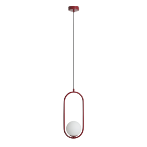 Lampa wisząca Riva Red Wine sprawdzi się jako źródło światła i element dekoracyjny nowoczesnej sypialni, jadalni lub salonu. Mleczny, kulisty klosz lampy osadzony jest w metalowej, smukłej, owalnej obręczy. Nowe wykończenie kolorystyczne to odcień czerwonego wina zbliżony do koloru roku wg Instytutu Pantone – Viva Magenta.