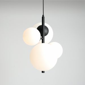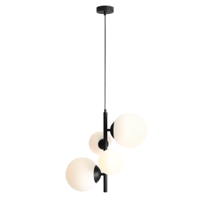 Nowoczesna lampa wisząca Bloom Black to modne i efektowne oświetlenie, dające przyjemne światło i niezapomniane wrażenie. Lampa, dzięki zastosowaniu czterech źródeł światła (matowe, białe klosze w dwóch rozmiarach: 14 i 20cm), pięknie rozświetli przestrzeń, w której się znajduje. Klosze oplatają ramię lampy niczym grono i dają niezwykły, niebanalny efekt zarówno przy zgaszonym, jak i zapalonym świetle.