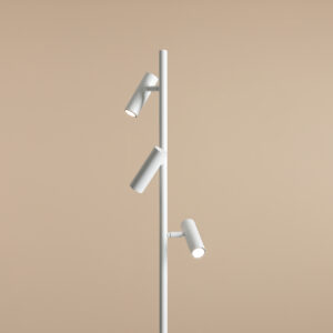 Minimalistyczna propozycja oświetlenia: lampa Trevo Floor w białym, matowym wykończeniu, to lampa stojąca z trzema ruchomymi kloszami w formie tuby o średnicy 3,7cm każdy, które pozwalają na dowolne ustawienie kąta padania światła. Niebanalny efekt wizualny, ciekawe wzornictwo i najwyższej jakości materiały zadowolą najbardziej wymagających klientów.