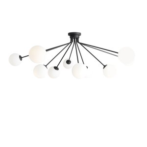 Potrzebujesz spektakularnego oświetlenia salonu, jadalni, gabinetu? Plafon HOLM z dziesięcioma źródłami światła umieszczonymi w białych, matowych kloszach, to lampa dla Ciebie. Rozłożysta, nowoczesna lampa sufitowa o różnym nachyleniu ramion przykuwa uwagę i znakomicie rozświetla przestrzeń. Ułożeniem ramion względem siebie można ustawić samodzielnie a maksymalna szerokość lampy to aż 140 cm.